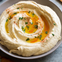 Creamy chickpeas blended with tahini, garlic, lemon & olive oil.